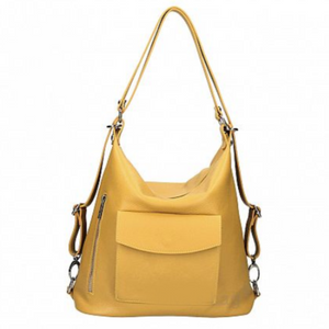A great sixed shoulder bag and backpack with pockets galore. Made in Italy from 100% leather and in a great variety of colours. The stock availableeither has a pocket with flap on the front or a zipped pocket.